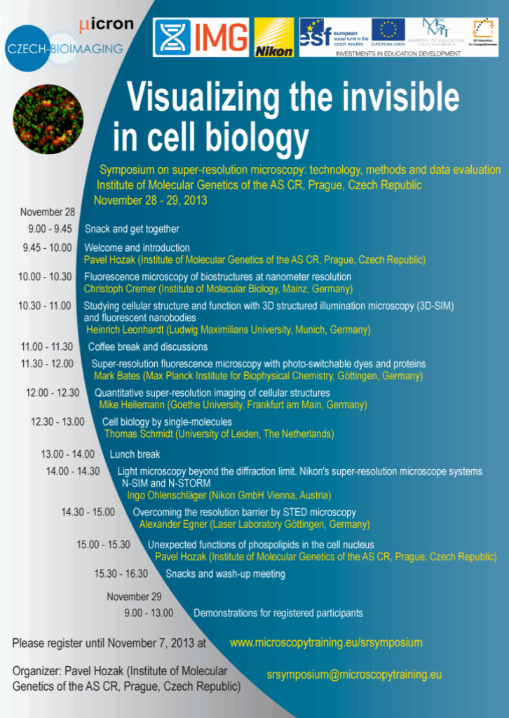 Symposium on super-resolution microscopy: technology, methods and data evaluation, Institute of Molecular Genetics of the AS CR, Prague, November 28 – 29, 2013